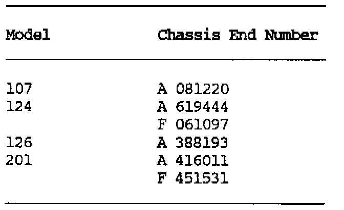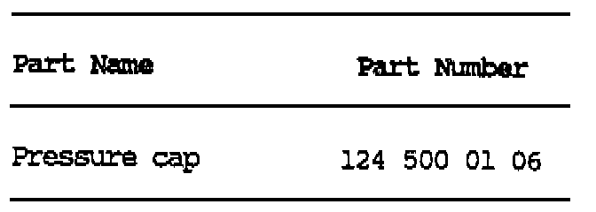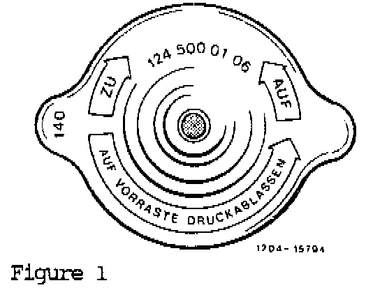 As of November 1987 production, a modified cap is installed on the coolant expansion tank. Its opening pressure is 1.4 bar (previously 1.2 bar). As a result the maximum coolant temperature increases to approximately 130°C (265°F) with an anti-freeze protection to -30°C (-22°F). This modified cap has the stamped identification number 140 and a blue dot in its center.