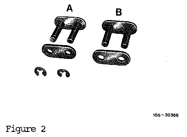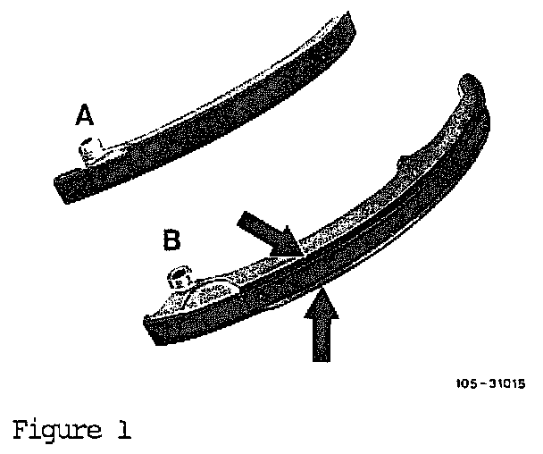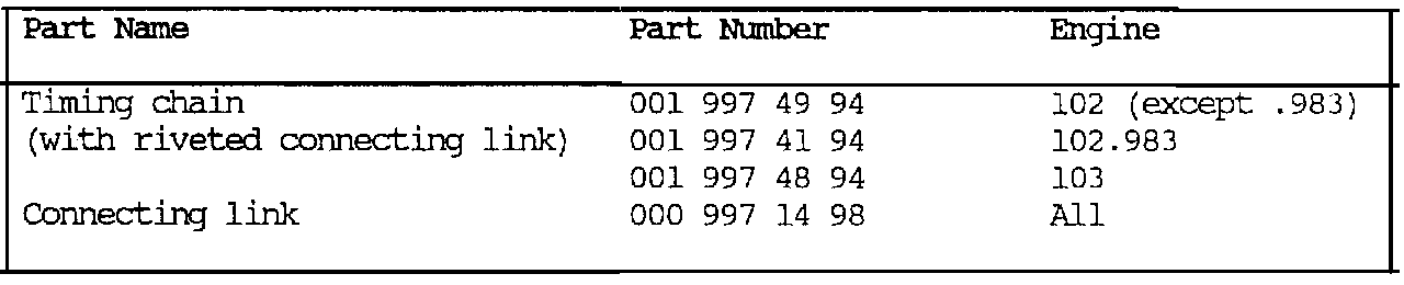 The previous version connecting link with snap rings (A, Figure 2) can be used up on 102 engines with flat tensioning rail linings.