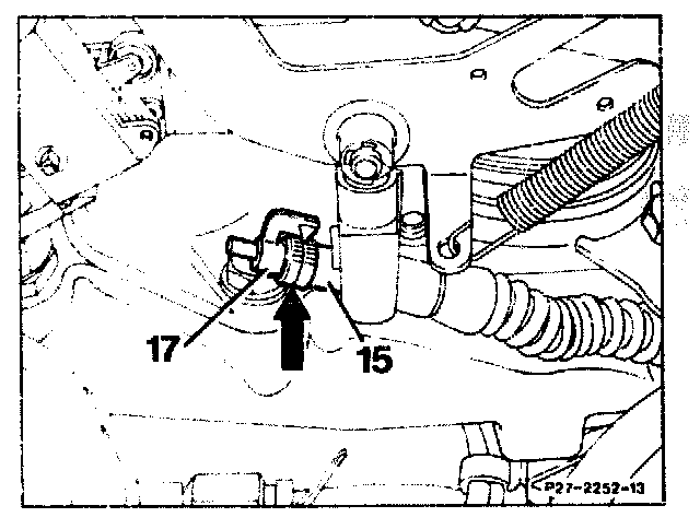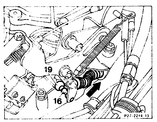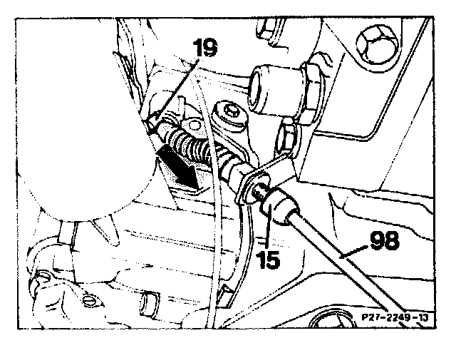 1. Press off ball socket (19). Separate idle travel rod (8) as far as the stop, pull control pressure cable forward until a slight resistance is felt. In this position, hold ball socket above the ball head and attach free to tension; it may be necessary to re-set idle travel rod (8).