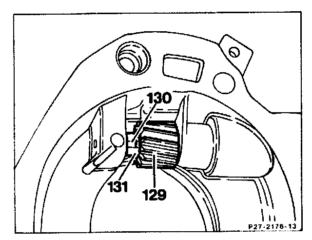 14. Remove drive gear (129) for mechanical speedometer.Take off locking element (131), take out shaft (130) and drive gear (120).