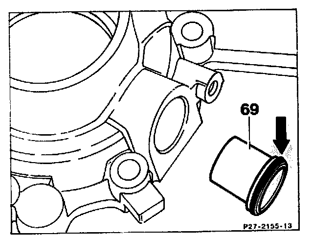 16. If a new plastic bush (69) with O-ring (arrow) has to be installed on vehicles with electronic speedometer, insert the plastic bush with the shop-made drift.