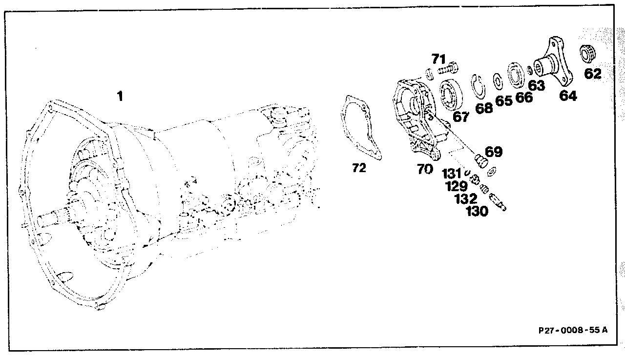 When removing the rear transmission cover, ensure that the kickdown solenoid valve is not damaged. It may be necessary to slacken kickdown solenoid valve and turn it slightly.