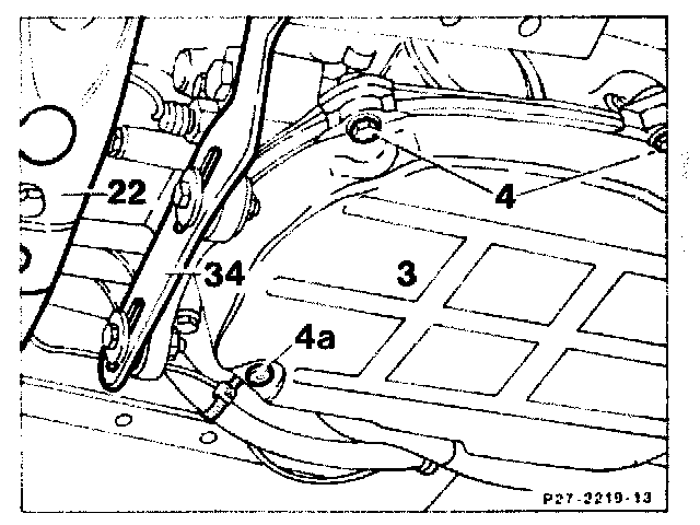 3. Remove crossbar (22) with rear engine mount.
