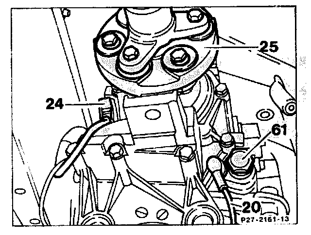 6. Unscrew cable (20) at the kickdown solenoid valve (61). Remove bolt at the pulse generator (24) and withdraw pulse generator.