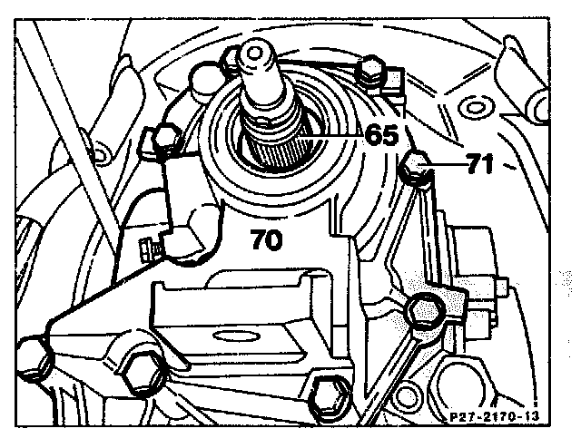 Examine gasket for signs of damage. As a rule, it may be used several times, but must not be coated with sealant. Screw in bolts (71) and tighten to 13 Nm.