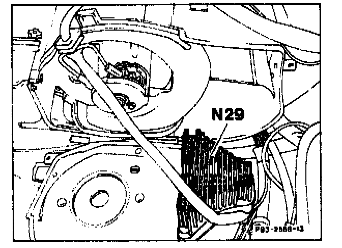 To prevent any thermal overload of the motors, an emergency cutout facility has been integrated into the control unit of the automatic climate control. This is controlled by the coolant temperature gauge sensor (B 13 or B 11/7) via the control unit of the automatic climate control.