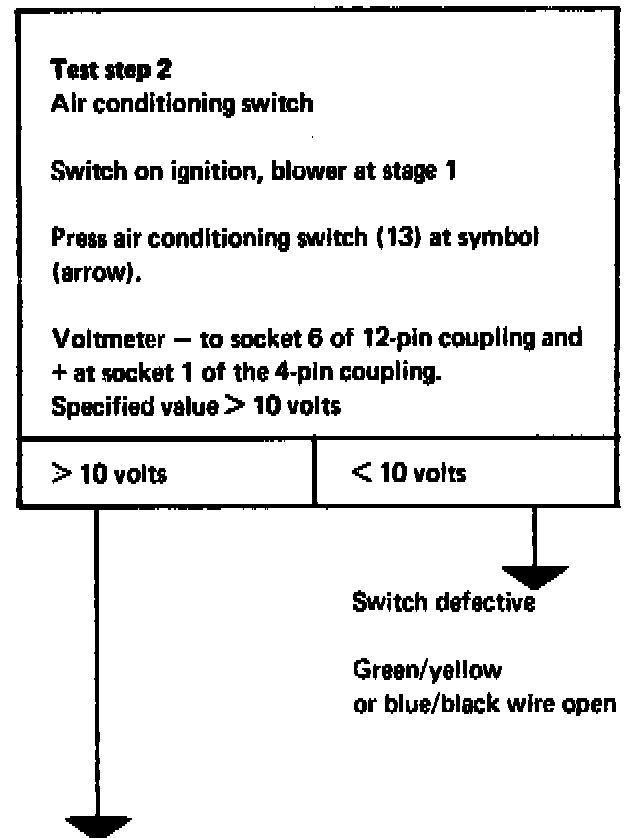 - In the event of unsatisfactory operation in accordance with complaint "A/C compressor does not operate" or "does not switch on" diagnose trouble in accordance with the following test procedure.