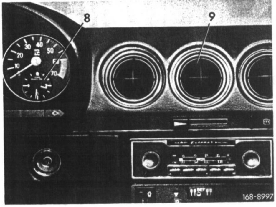 As from September 1973, the time clock (8) in center of panel is replaced by a third ball nozzle (9).