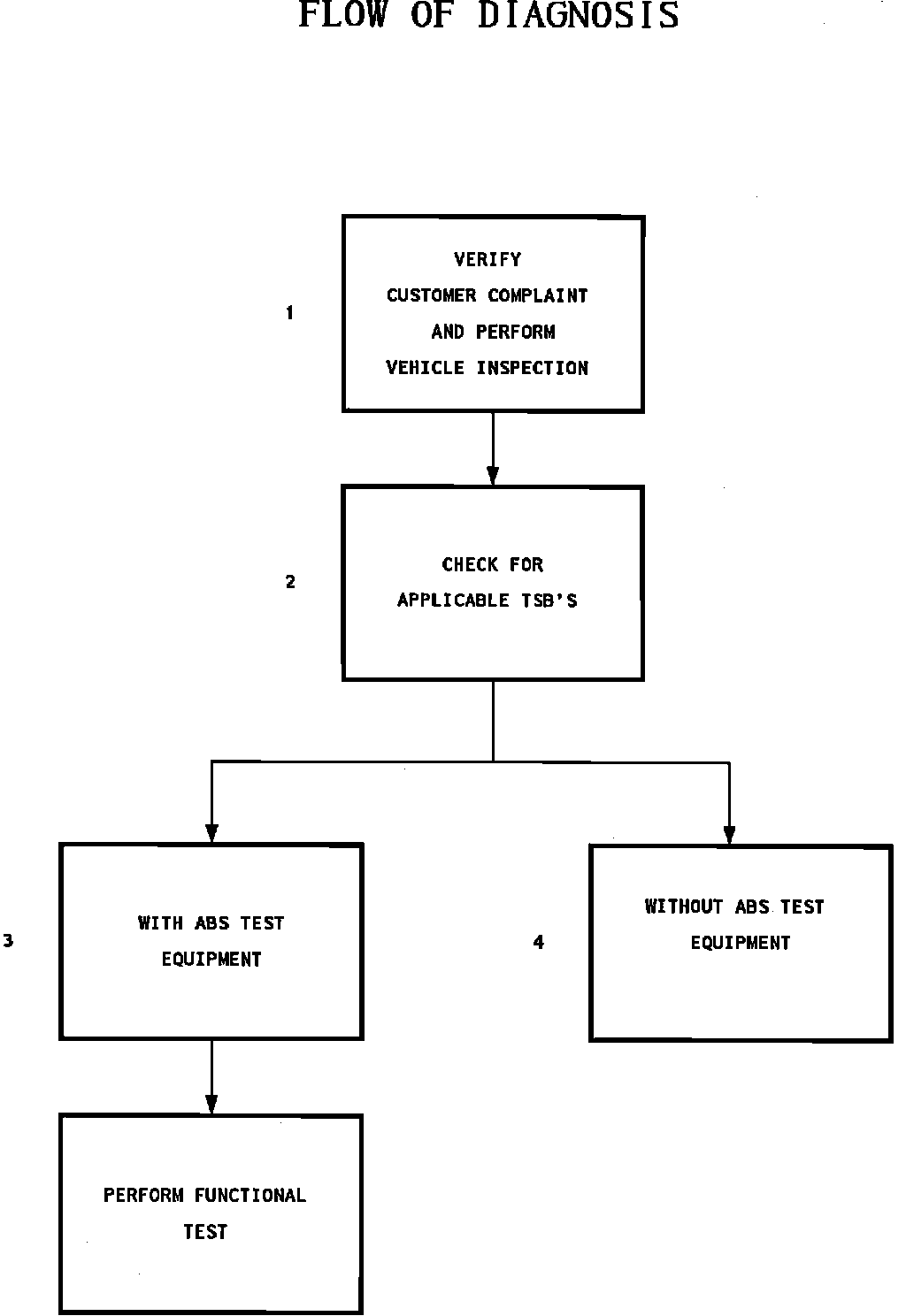 4. Refer to this section in "TESTING PROCEDURES" if special test equipment is not available. NOTE: These tests are limited to only specific areas of the ABS system.