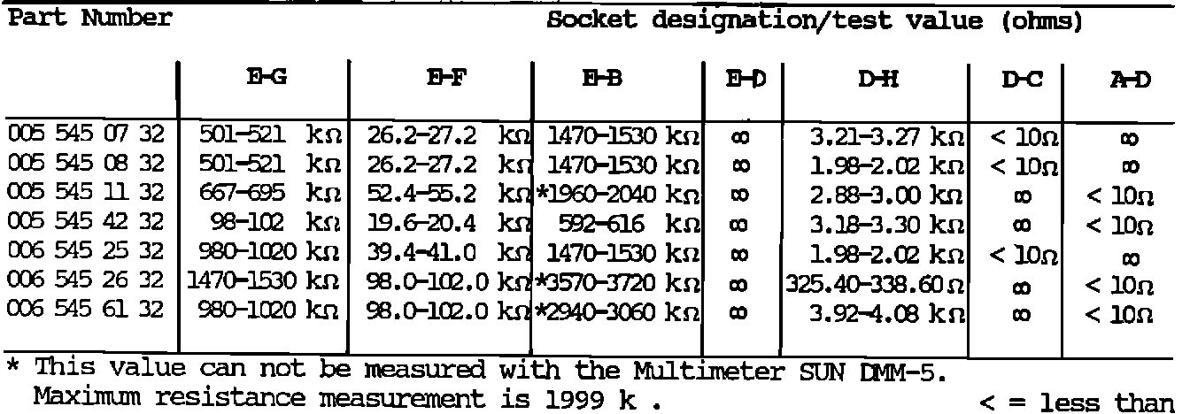 3. Test resistance values (see table) If values deviate from table, replace reference resistor.