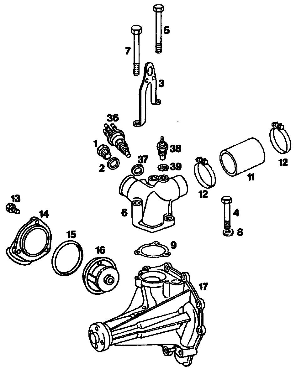Coolant pump, coolant thermostat and inlet connection (thermostat housing)