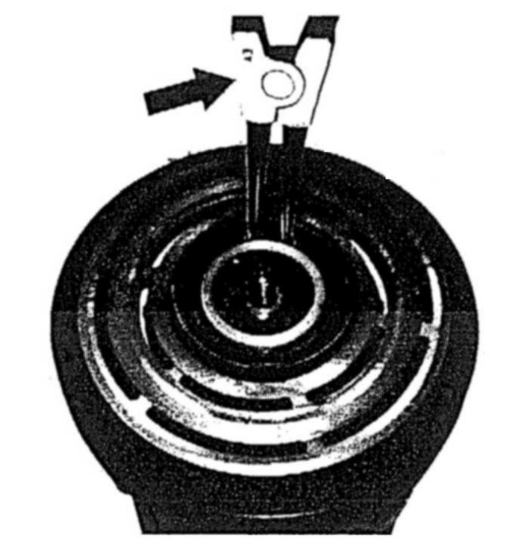 7 Mount magnetic coil (fitted pin) and install locking ring (arrow).