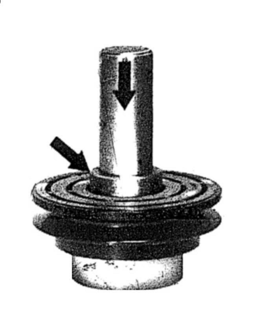 6 Force out antifriction bearing with special tools (arrows).