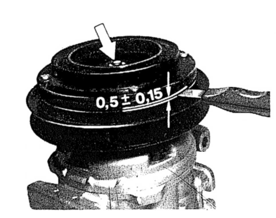 9 Place spacing washer and spring plate on compressor shaft, tighten nut (arrow).