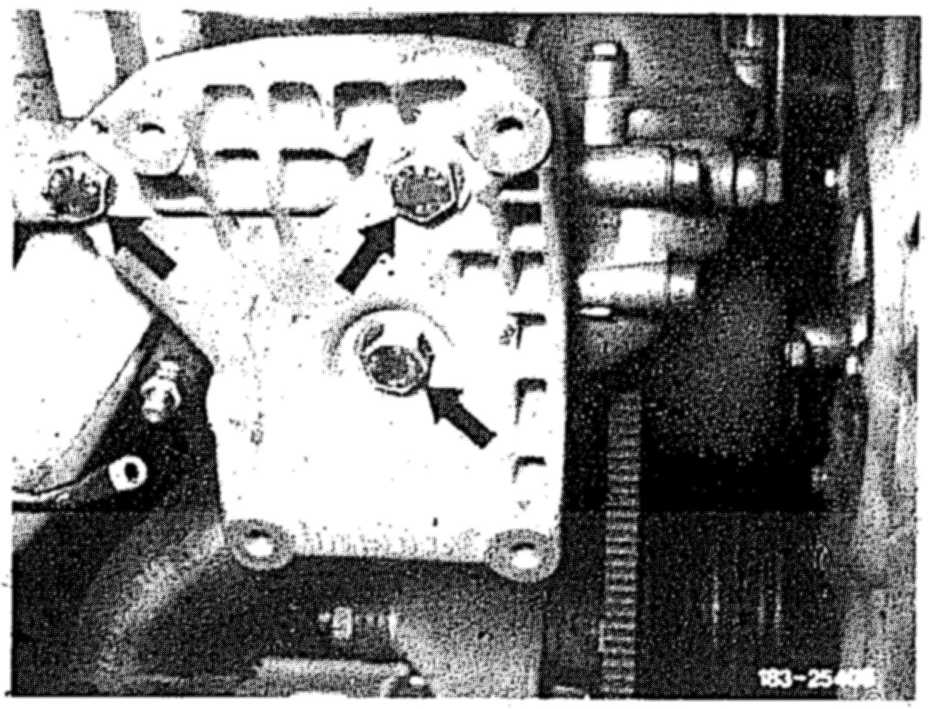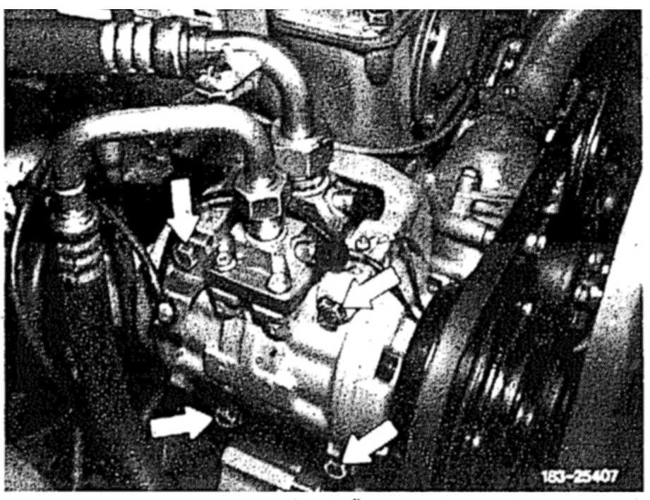 7 Unscrew four screws M 8 x 90 (arrows) and remove refrigerant compressor.