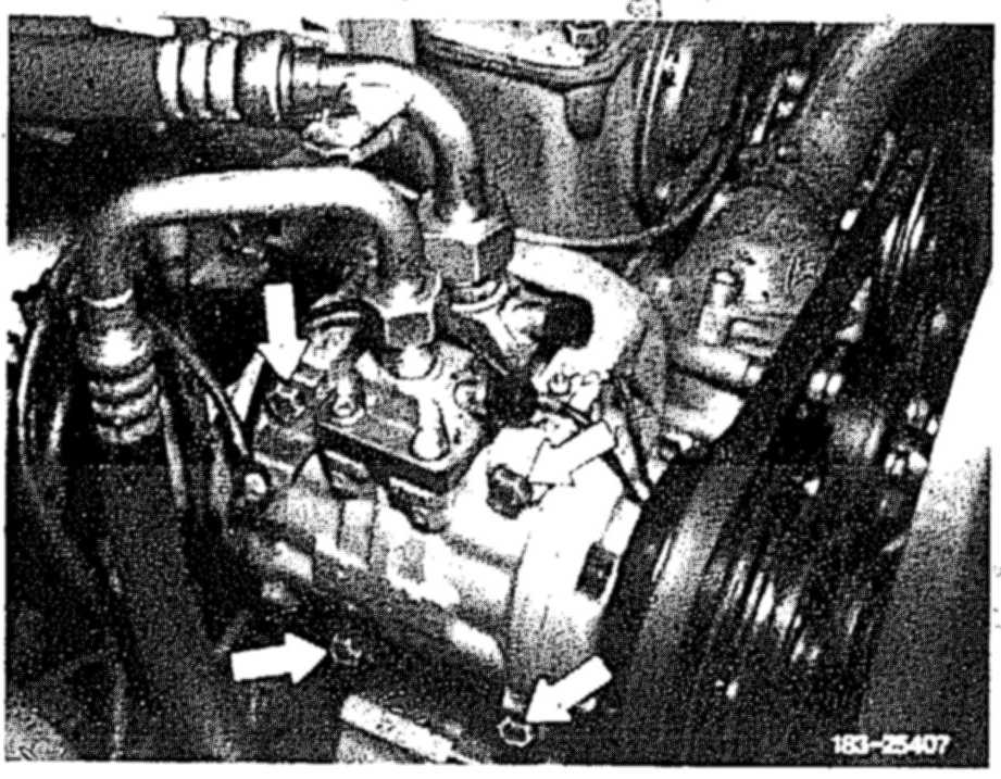 8 Check compressor carrier for damage and check screws (arrows) for tight seat.