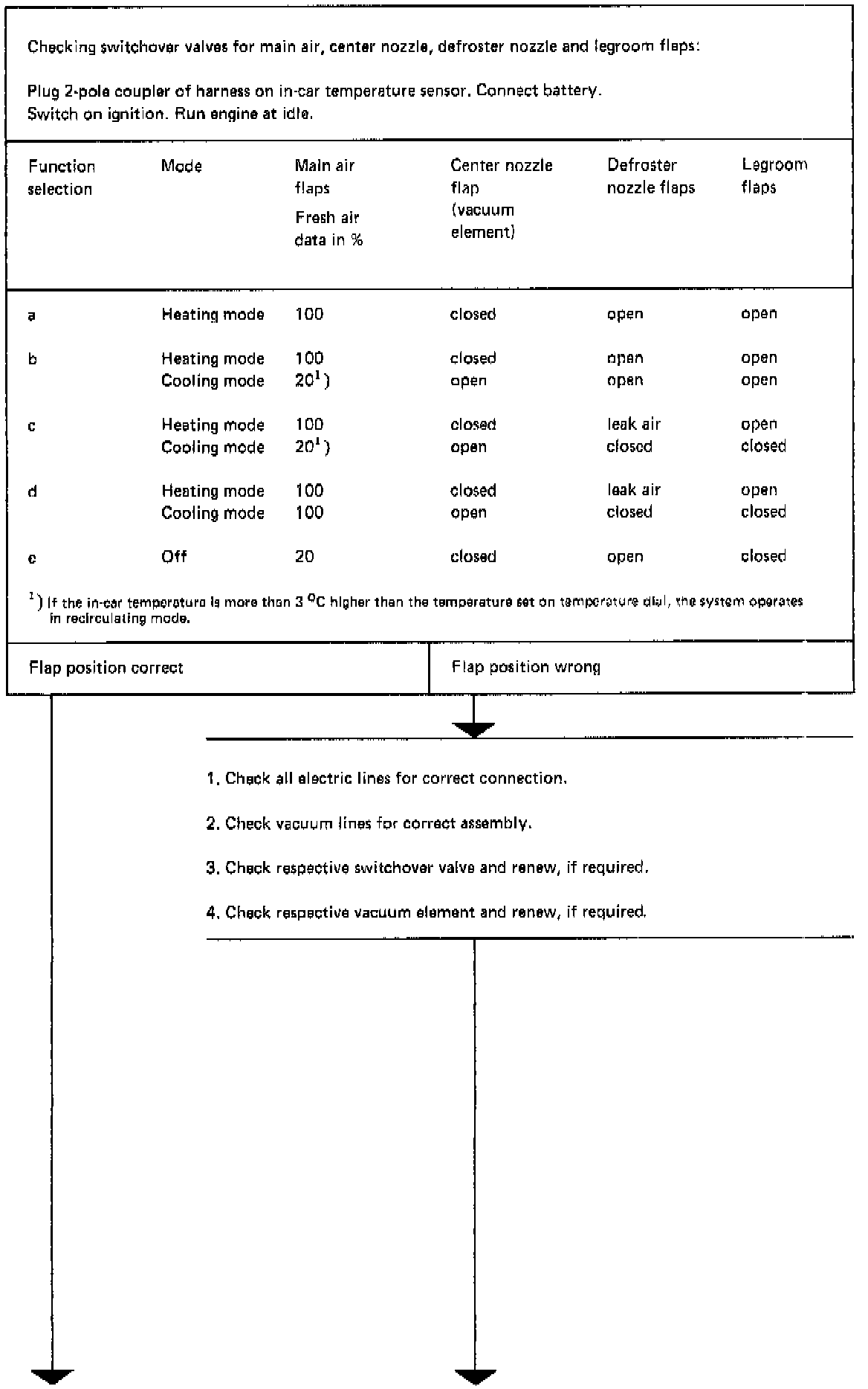 CHECKING SWITCHOVER VALVES FOR MAIN AIR, CENTER NOZZLE, DEFROSTER NOZZLE AND LEGROOM FLAPS:Wiring Diagram Reference: