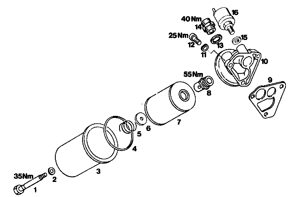 NOTE: New oil filters are supplied with initial operation filter elements which, on new engines, should be used up to the inspection at 1000-1500 km.
