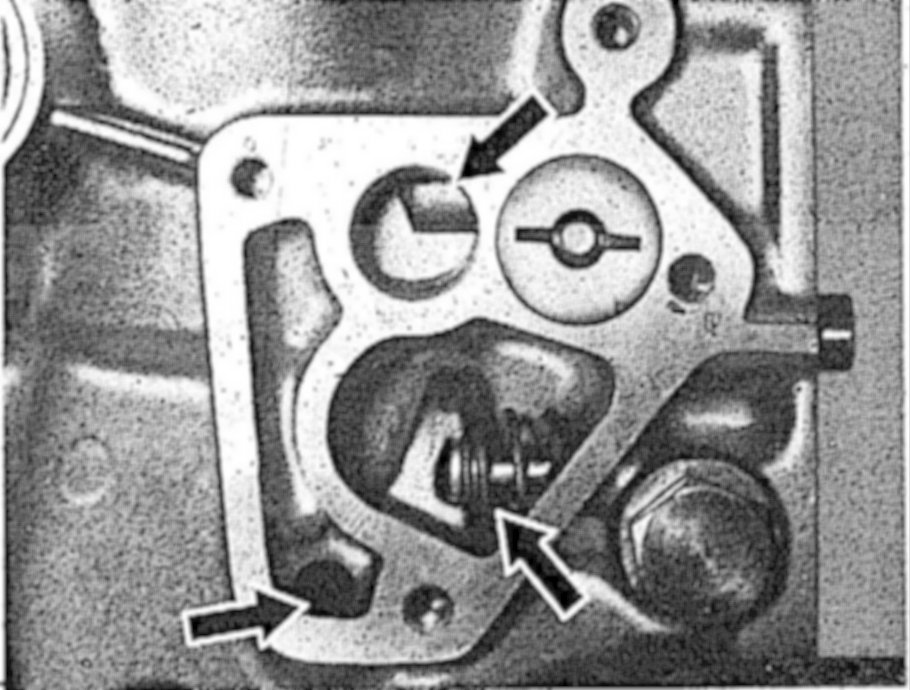 First close the openings (arrows) in such a way that no remains of gasket can enter the oil ducts in the crankcase.