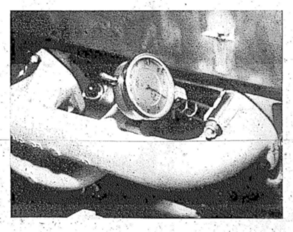 NOTE: With the cylinder head removed, attach a dial gauge holder to the crankcase and position dial gauge pin on the piston crown.