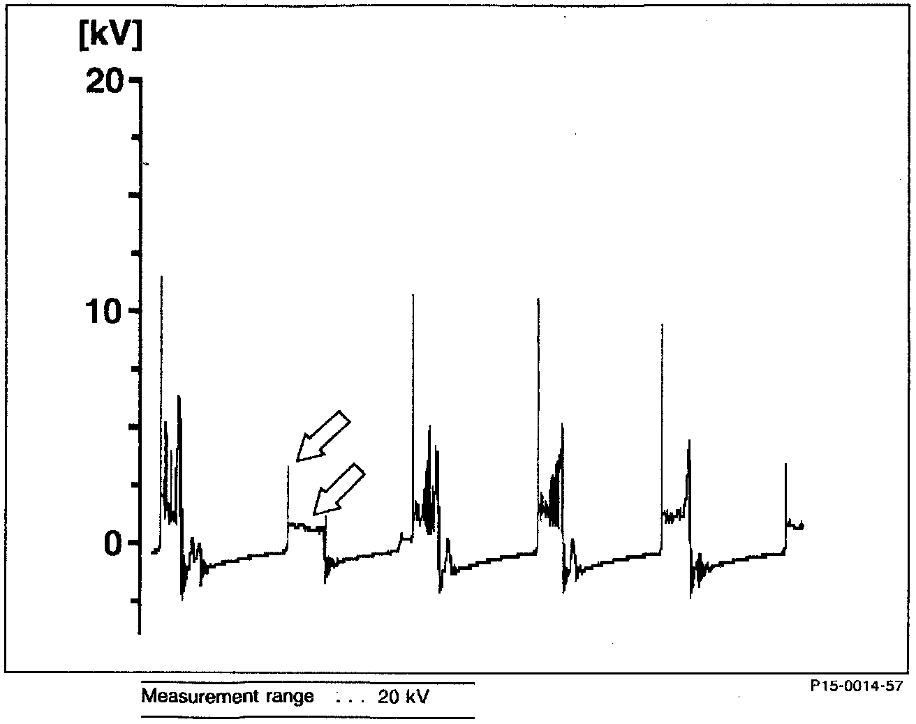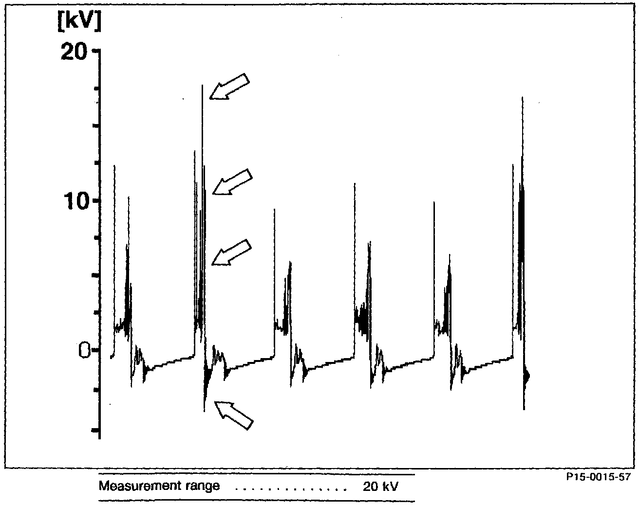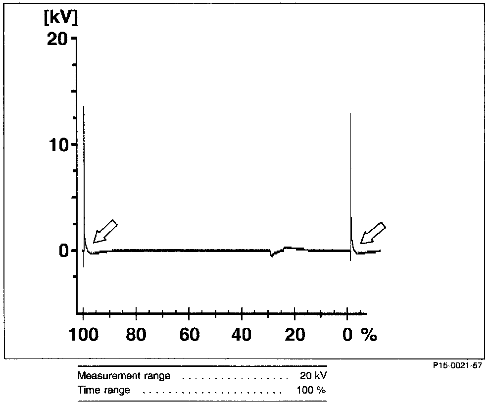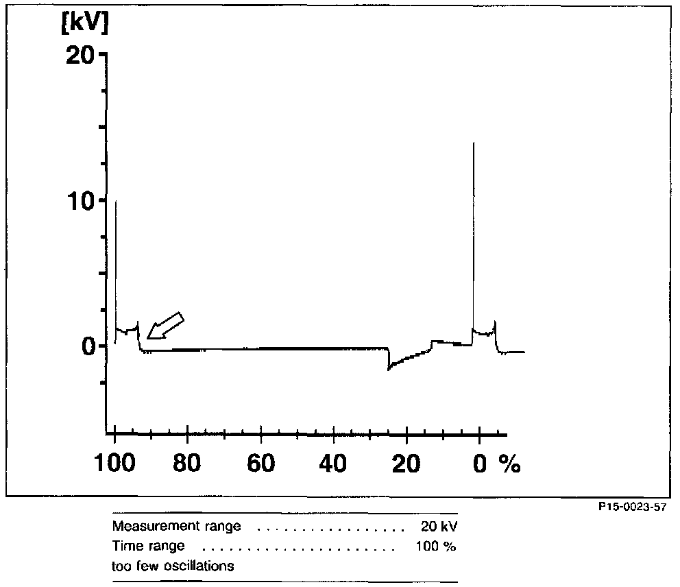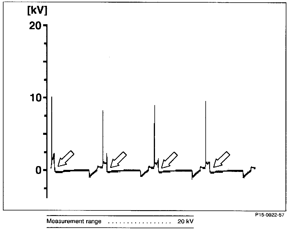 Ignition voltage too high/burn time shorter (arrows).