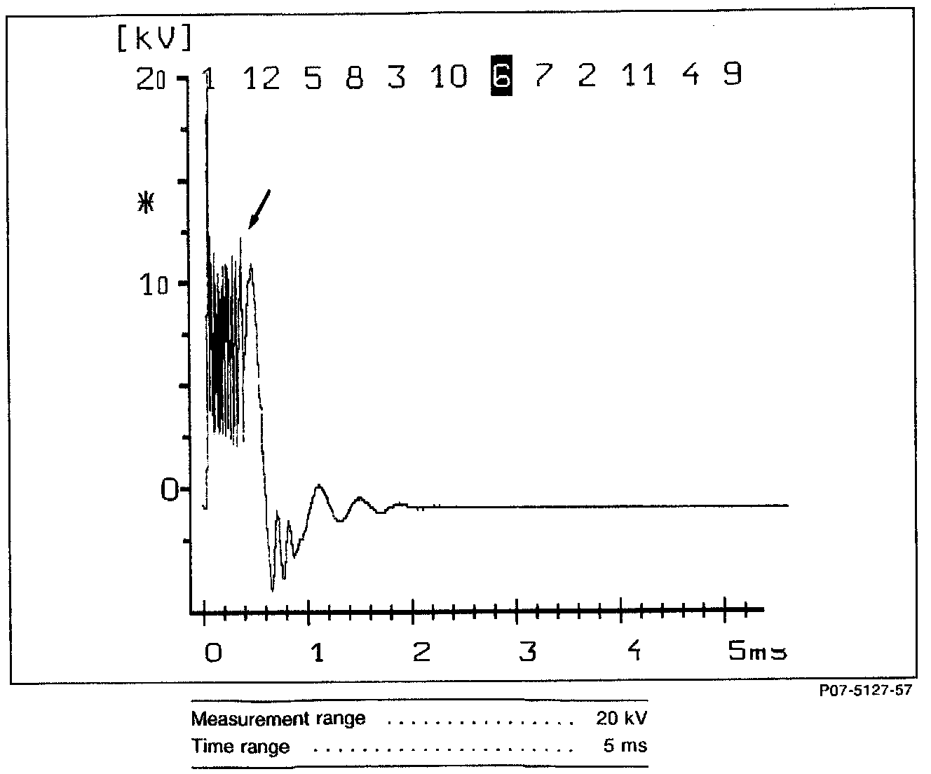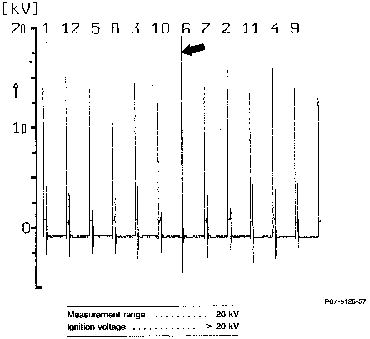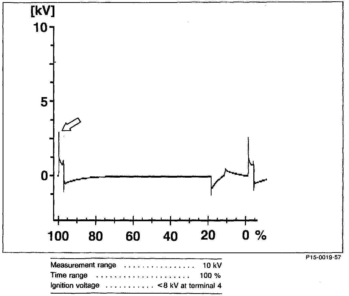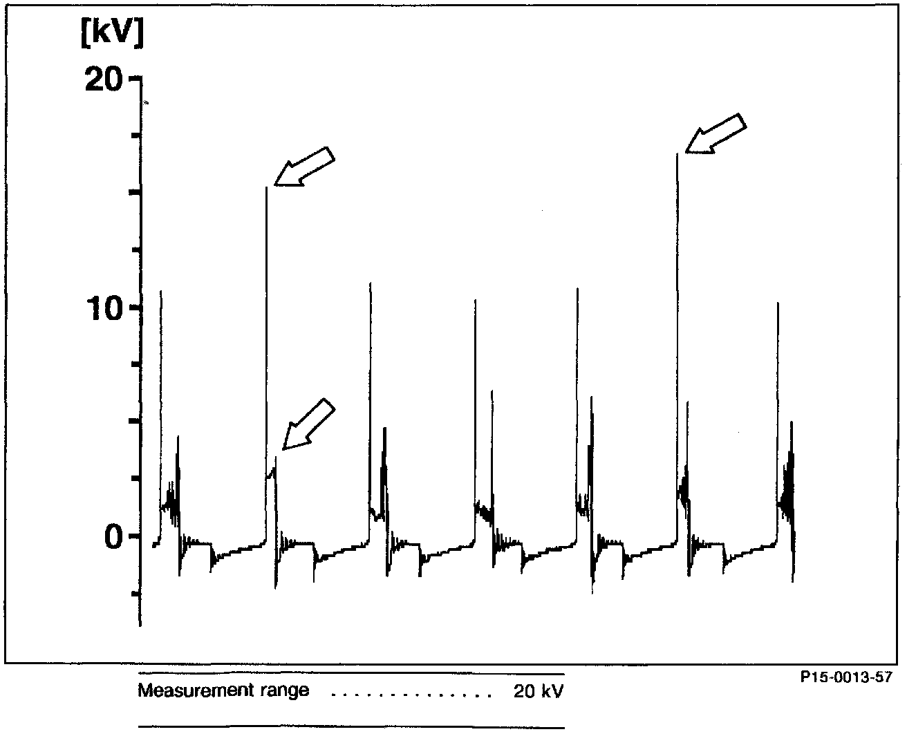 Ignition voltage too high/burn time shorter (arrows).