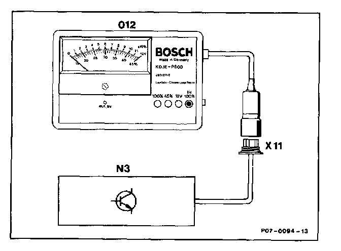 With fault diagnosis by measuring on/off ratioEffective 12/85, faulty input signals are detected by the CIS-E control unit (N3) and passed to the lambda test output. The faults detected can be output with the lambda control tester (012) at diagnostic socket (X11).
