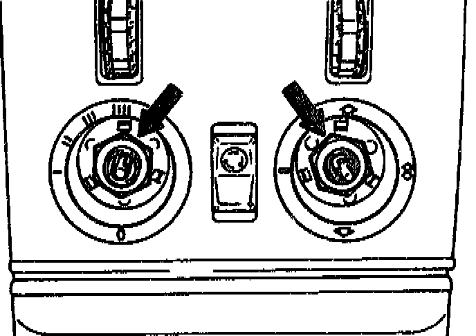 28. Insert air distribution switch (right) to the left and blower switch (left) downwards into retaining plate.