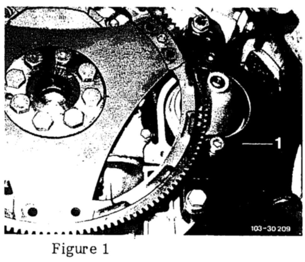 For starting an engine with the transmission removed, a bracket (1) to which the starter can be fastened, is available as a special tool (Figure 1).