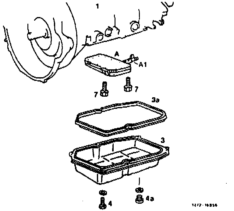 screw off and in, 8 Nm, remove oil pan (3), check gasket (3a).