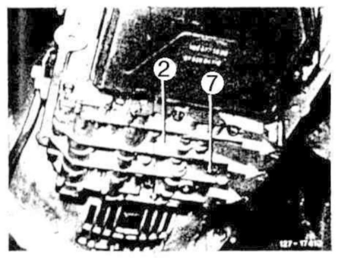 4 Unscrew fastening bolts (7) and remove shift valve housing (2).
