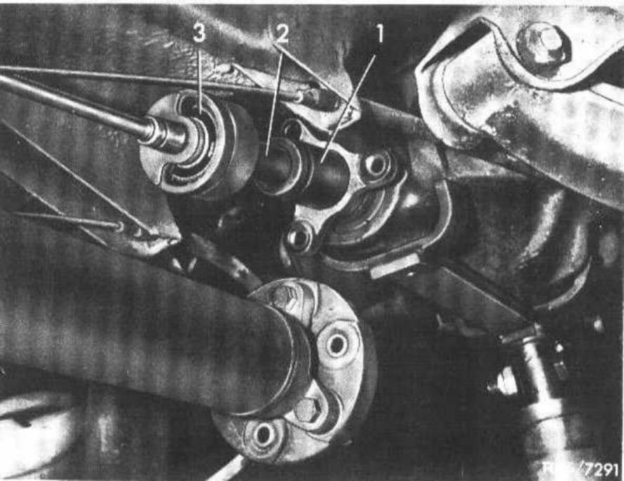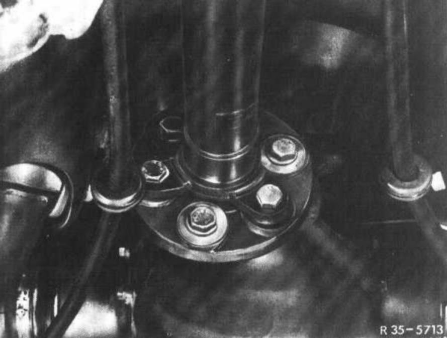 4 Unflange propeller shaft from rear axle and push forward out of concentric alignment.