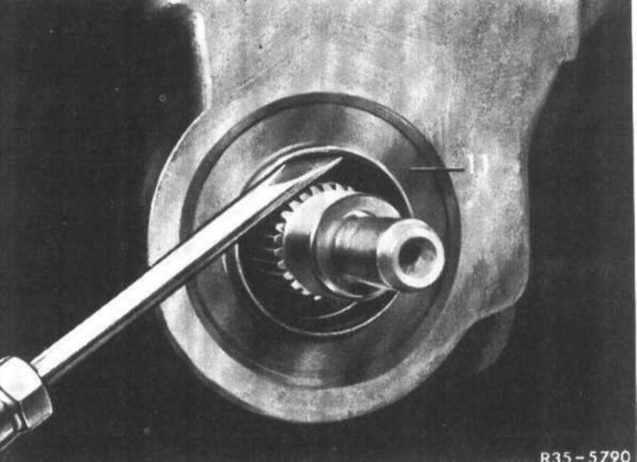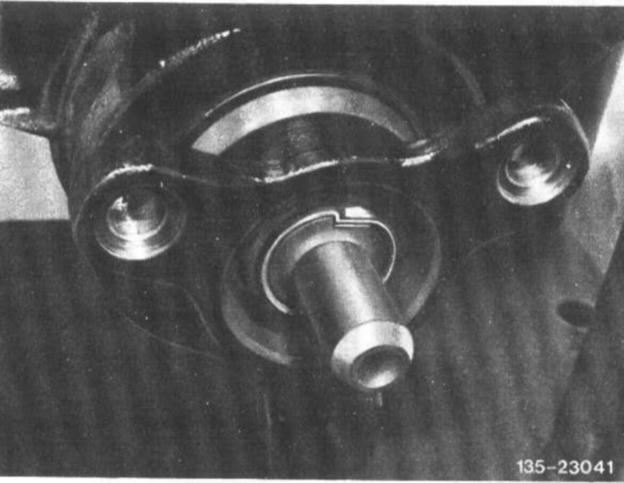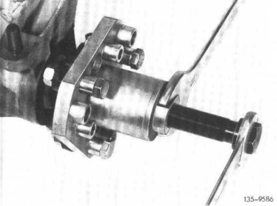 12 Peen crush slot nut or double hex. collar nut with a peening tool into one of the two grooves of drive pinion in such a manner that no gap shows up between groove and locking tab.