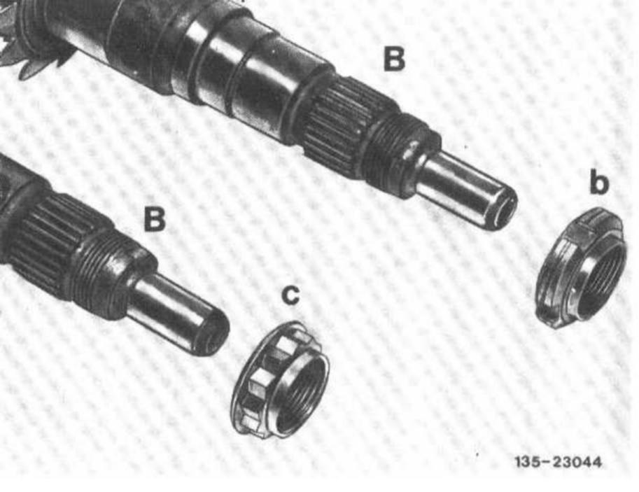 On drive pinion of 2nd version with groove (B) optionally use a crush slot nut (b) with a groove on circumference, or a double hex. collar nut (c). Other installation combinations are not permitted.