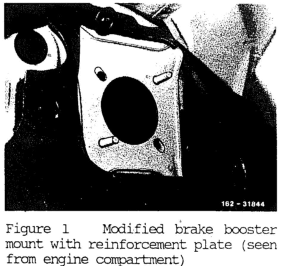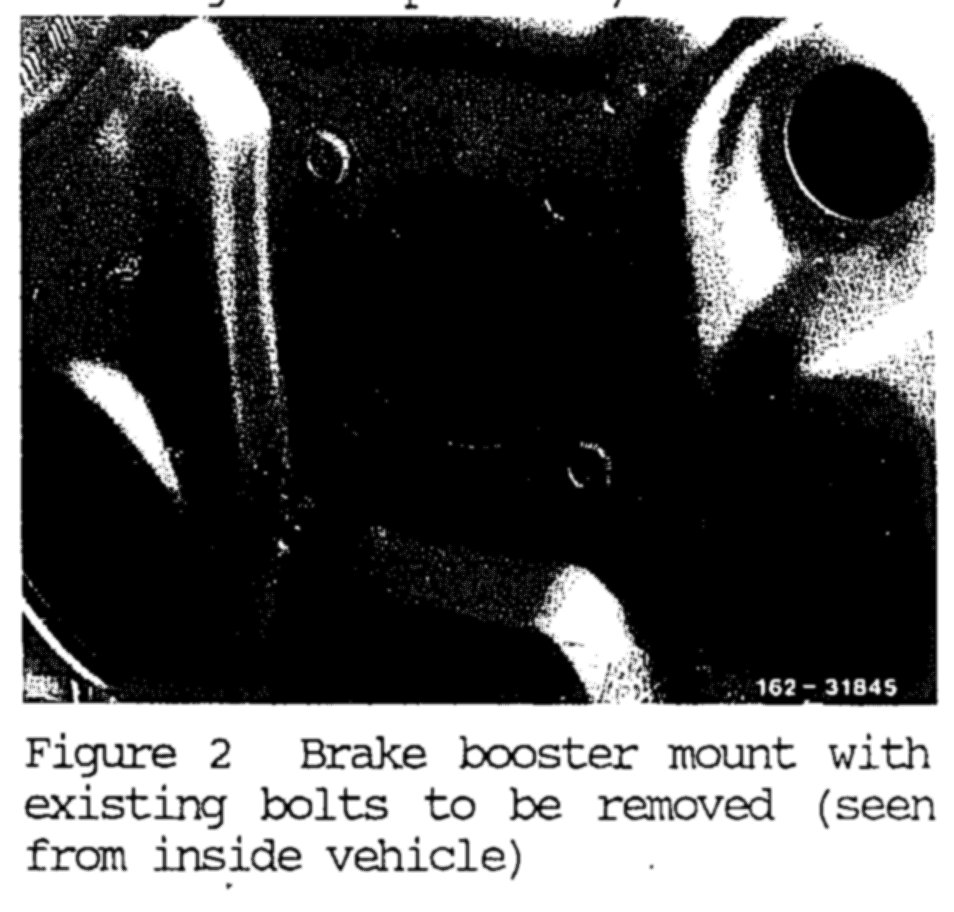 As of September 1985, the brake booster mount on the firewall has been modified (Figure 1).