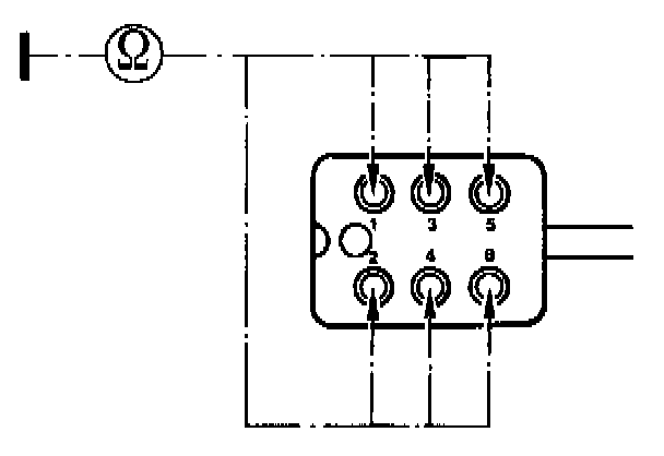 - With the multimeter ohm measuring range measure the resistance against ground (engine block) one after the other as follows: