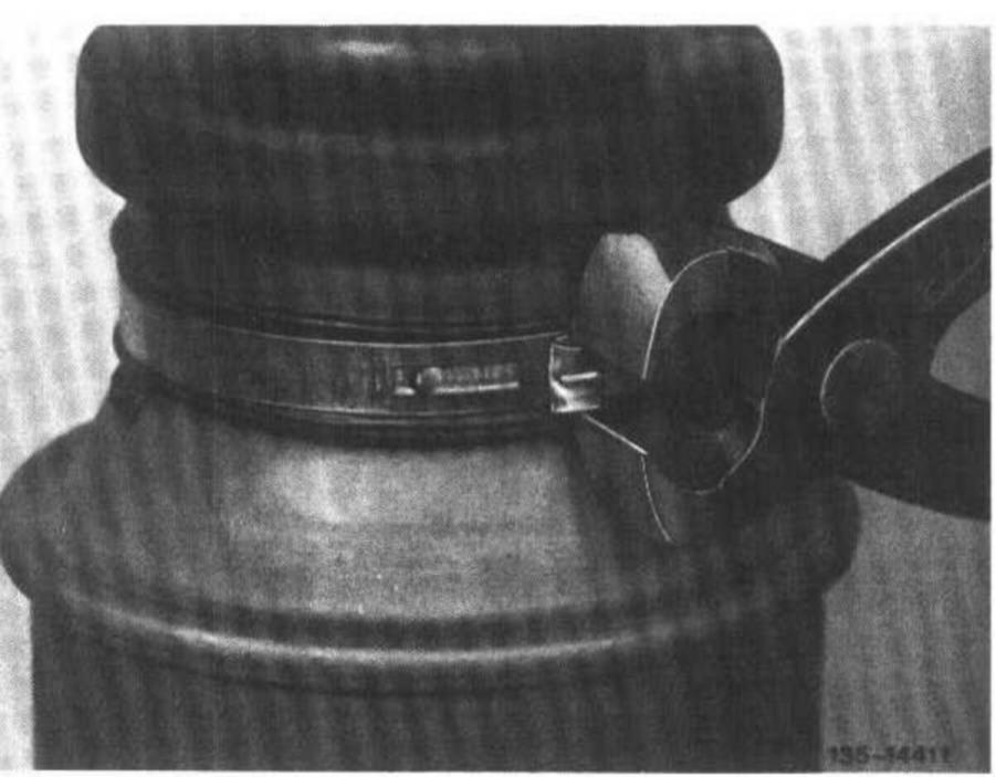 1 Loosen hose clamps and remove. Open hose clamps without clamping screw at tensioning eye by means of cutting pliers.
