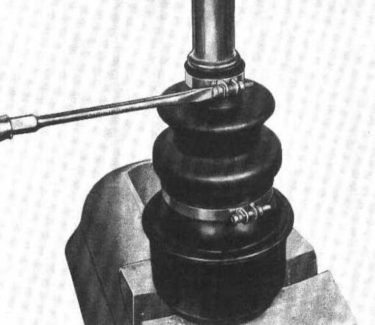 25 Attach rubber sleeve on stop sleeve and on rear axle shaft with new hose clips, while sliding sleeve up to bead machined on rear axle shaft.