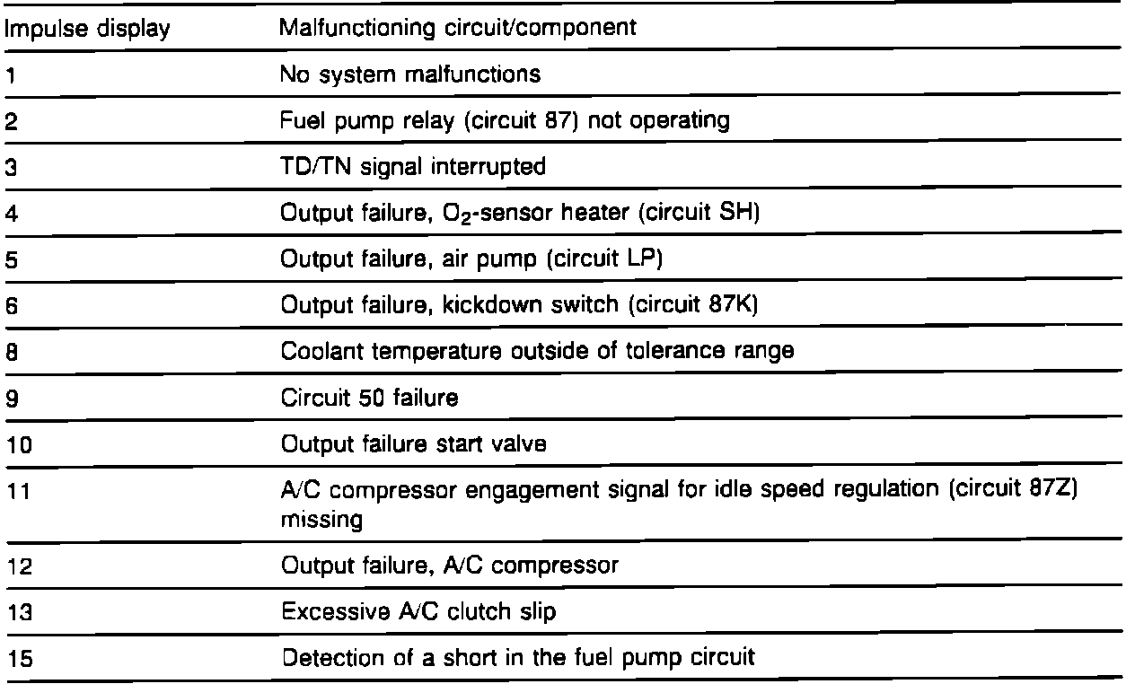 Engine Systems Malfunction Table: