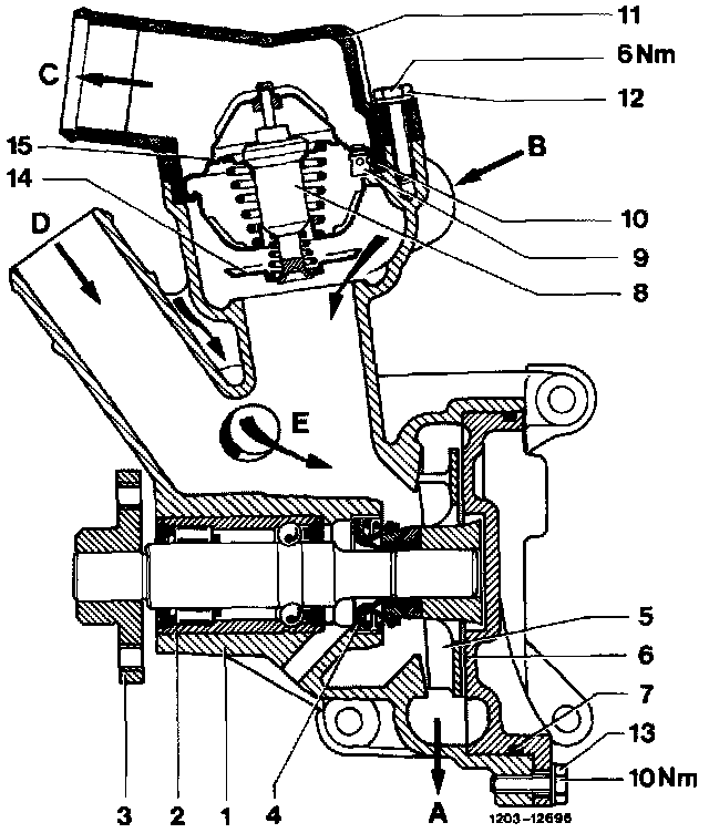 - Install coolant thermostat (8) so that the ball valve (9) is at the highest point.