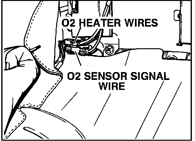 1. Disconnect the oxygen sensor wiring harness connectors which are located under the carpet on the right side of the tunnel.