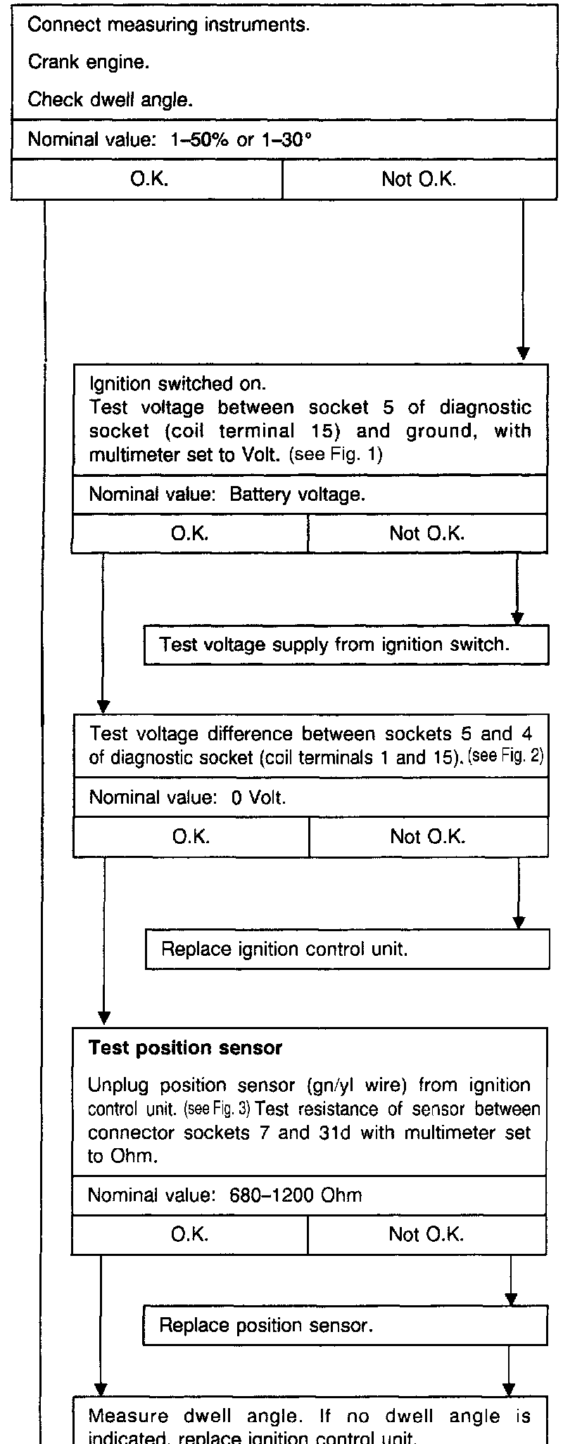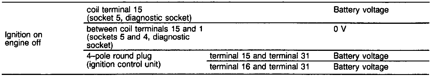 The basic functions of the ignition system are in order, but a fault in ignition adjustment is suspected. The faults may be caused by the coolant temperature sensor or by the ignition control unit itself. They cannot be evaluated using driving performance since this type of ignition control influences only the emission characteristics and the fuel consumption data.
