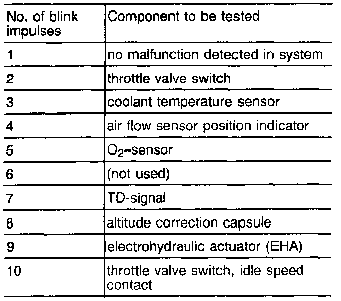 - During a system test, if no additional readout (number) appears after the initial one or more impulse readouts (numbers), this indicates no further malfunctions are stored in memory.