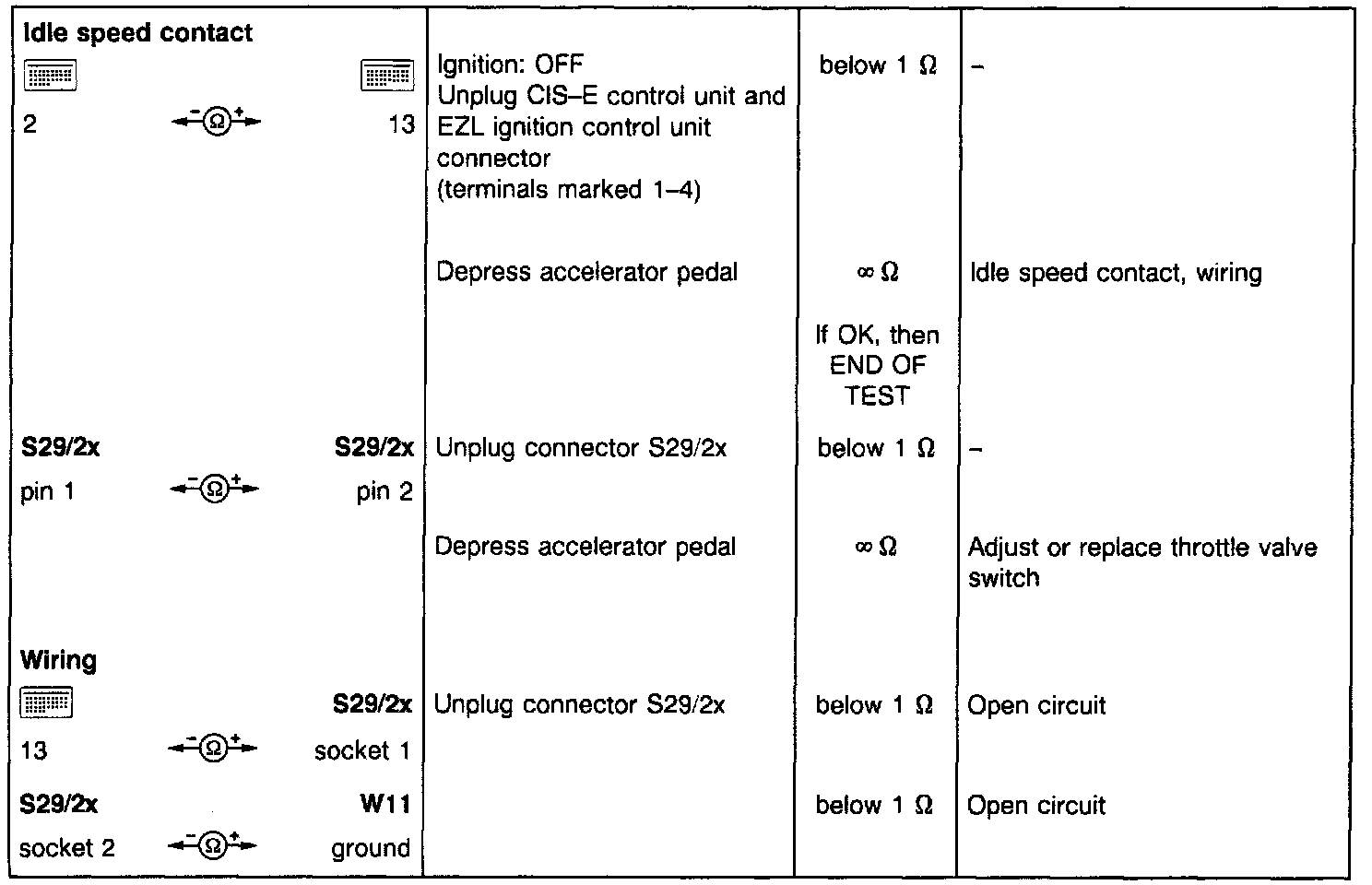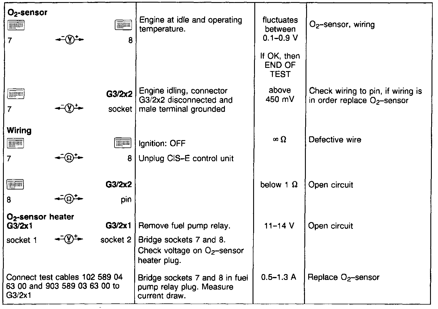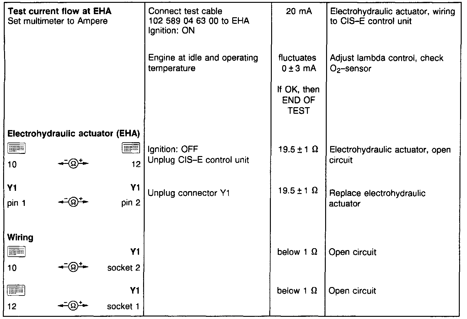 Do not disconnect battery, overvoltage protection relay or CIS-E control unit before or during the test, otherwise the stored malfunction will be erased from memory. Battery voltage: 11-14 Volts.