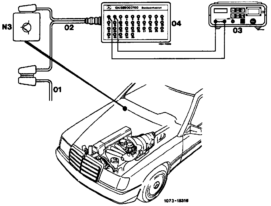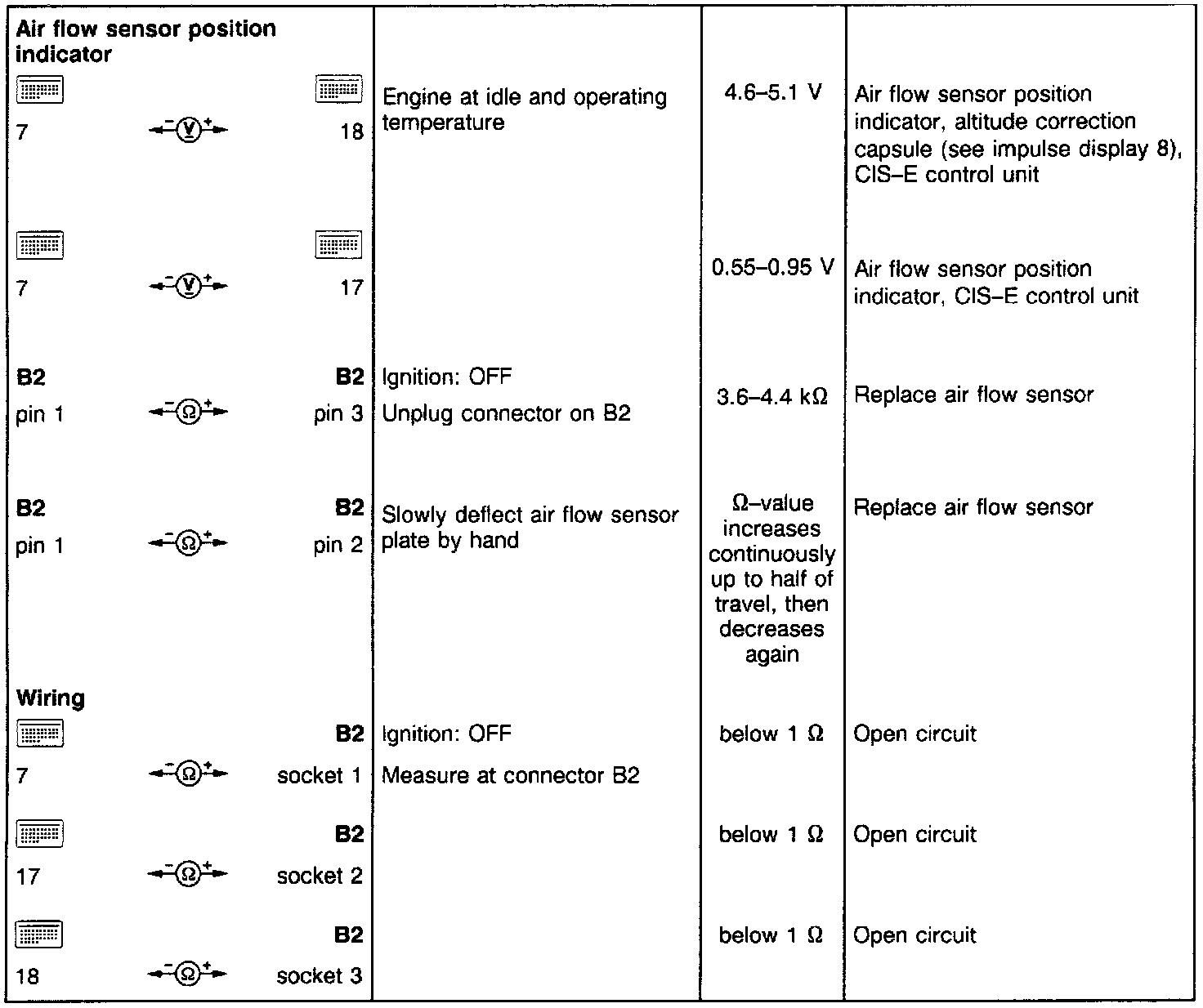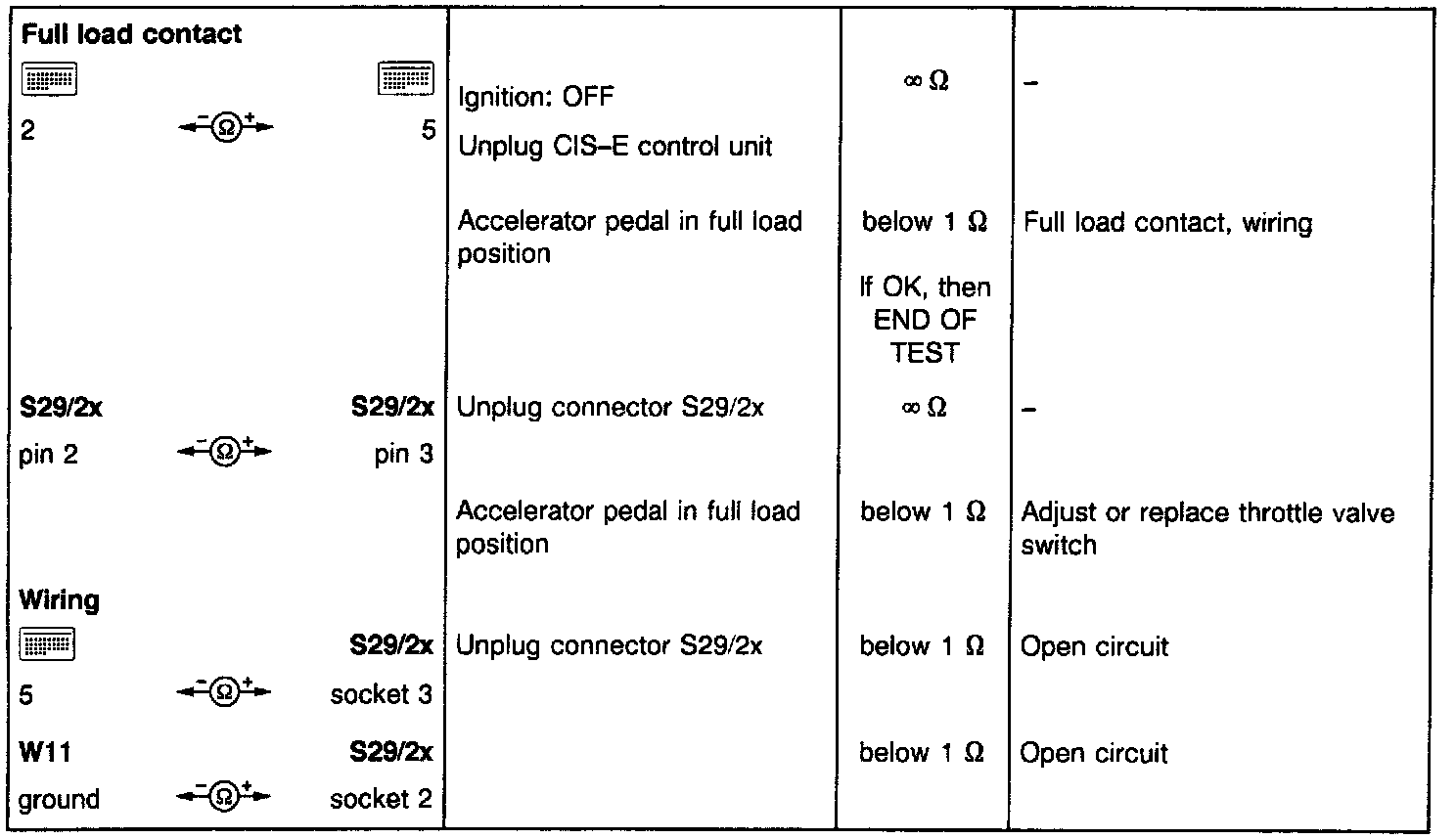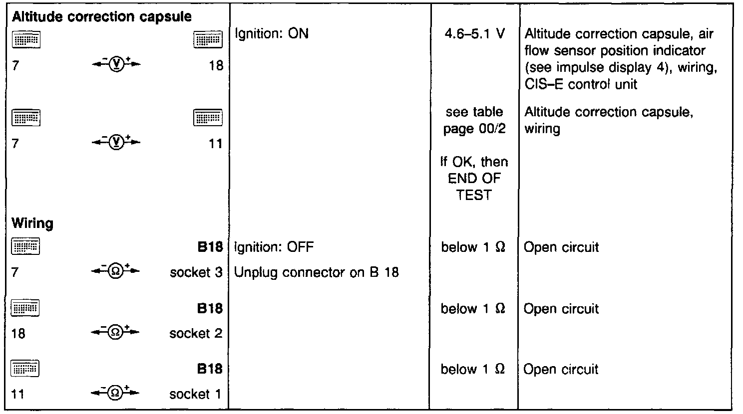 Do not disconnect battery, overvoltage protection relay or CIS-E control unit before or during the test, otherwise the stored malfunction will be erased from memory. Battery voltage: 11-14 Volts.