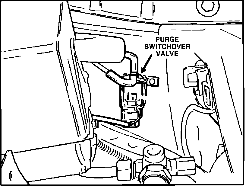 The purge valve and the switchover valve are located on the left side of the firewall.