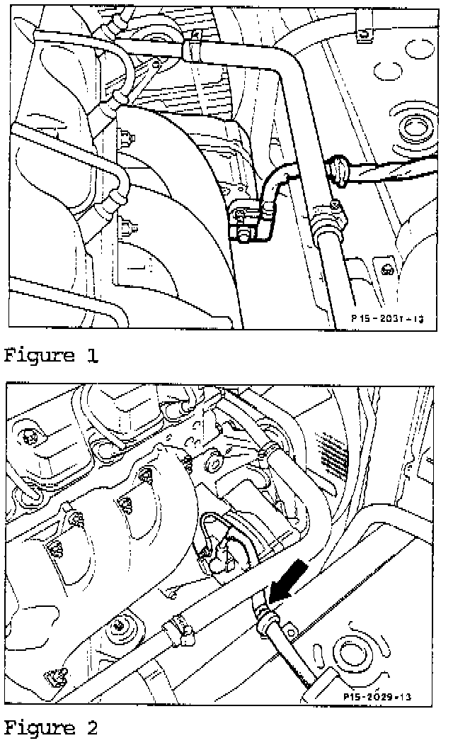 When installing the previous harness, relocate the black tape band (arrow, Figure 2) 3/4 of an inch towards the battery. Then shift the wiring harness towards the alternator until the harness forms a slight bow at the alternator. The black tape band must be on the engine side of the clamp.