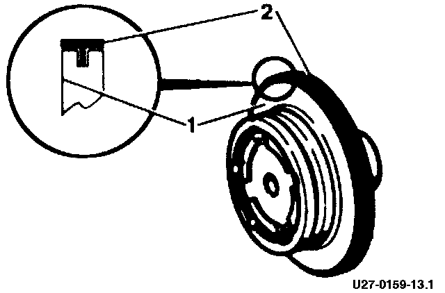 19. Install new B2 piston T-form ring. part no.'s 140 277 01 55 or 202 277 00 55, by carefully and evenly installing by hand from pressure application side of piston (indicated by "1", Figure 1).