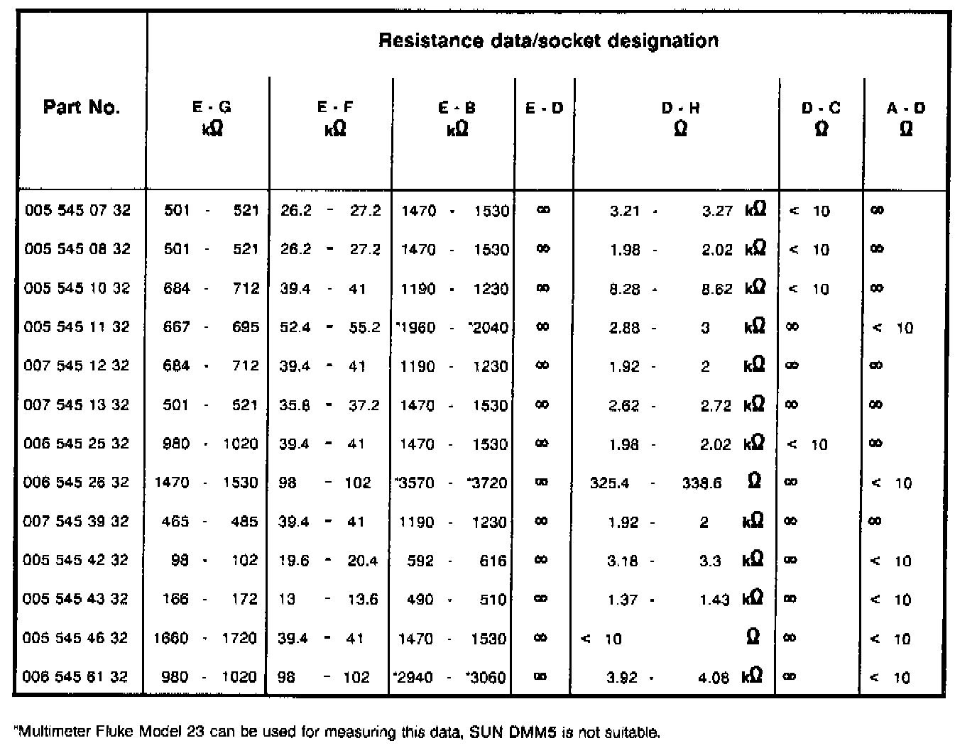 For their test values as well as individual applications, see Reference Resistance Test Values, or Parts Information.