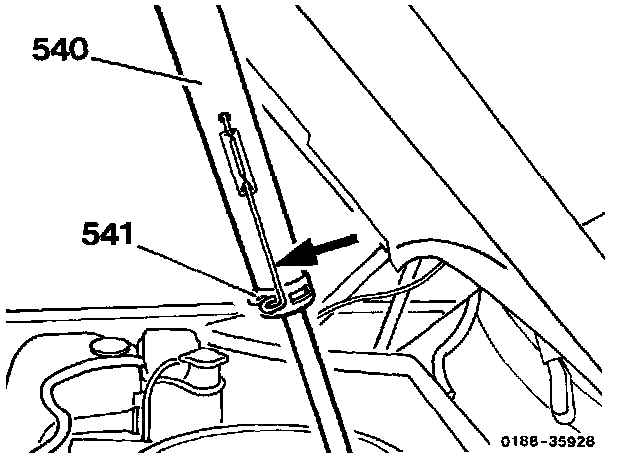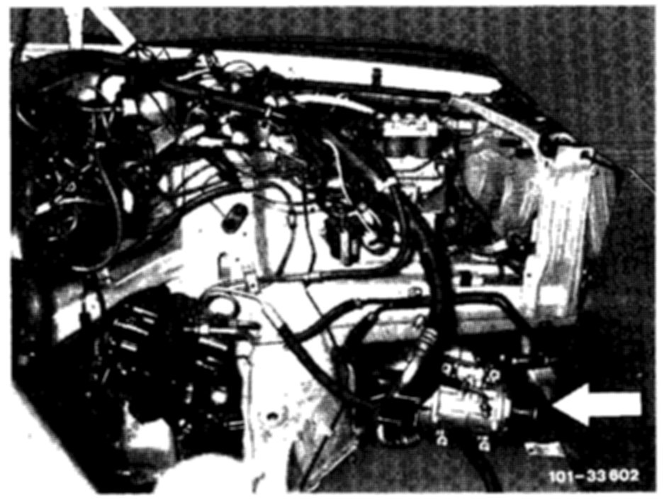3. Position suitable panel (arrow) between firewall and engine to prevent damage to to firewall.